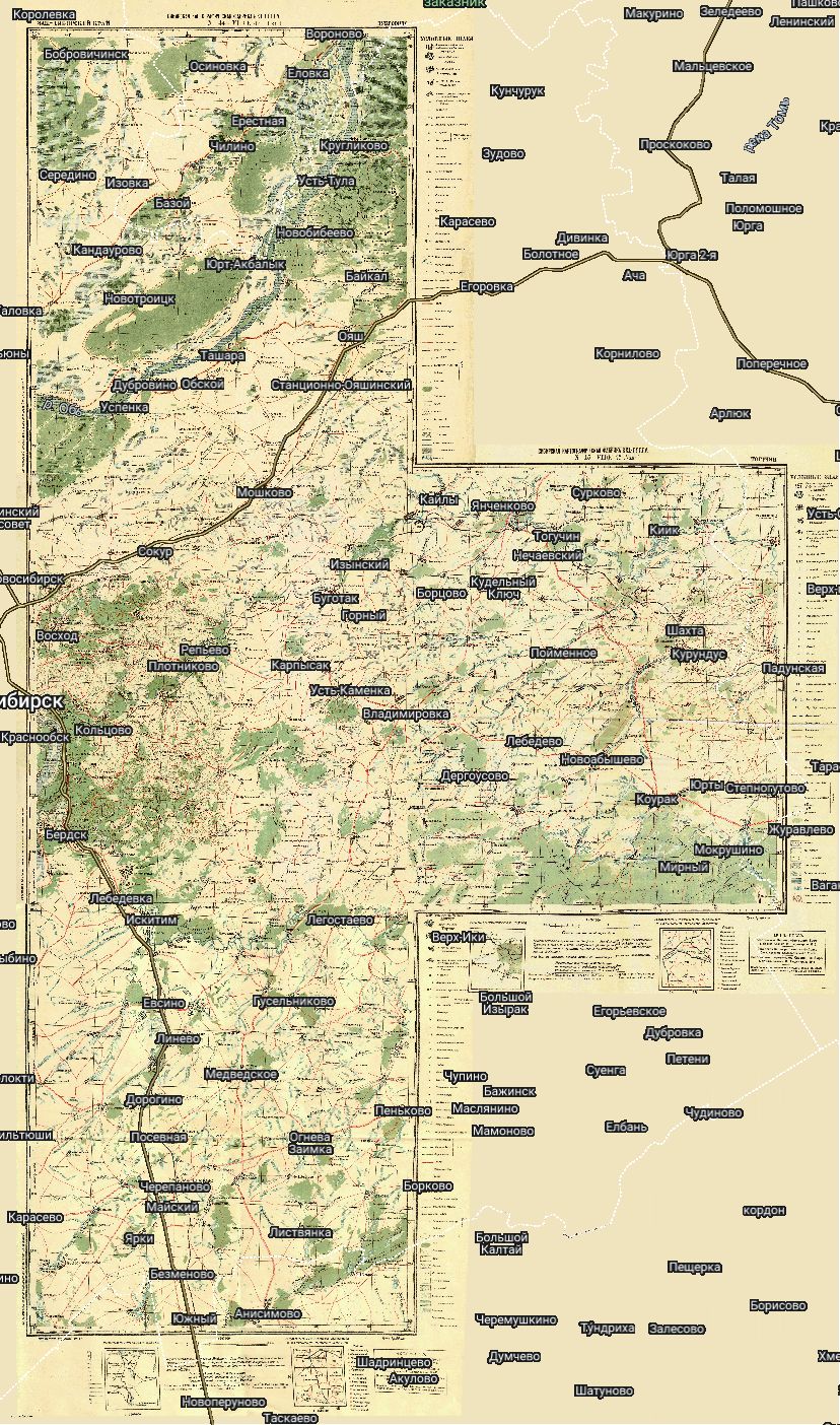 ![]() | Карта Западно-Сибирского края территории к востоку от Новосибирска - картинка Размер: 8955 x 15037 пикселей / 20 Мб | |
