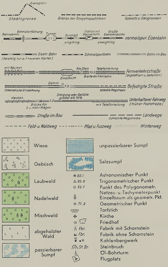 Сборная карта из листов военной немецкой карты Rusland масштаба в 1 см. 1 км. 1:100000 на территорию Орловской области, кроме её самого севера, и частично севера Курской области. Карта создана на основе листов карт РККА 1:100000 квадратов: N-36-107 (Хотынец), N-36-108, N-37-97, N-37-98 (Мценск), N-37-99, N-37-100 (Архангельское), N-36-119 (Шаблыкино), N-36-120 (Кромы), N-37-109 (Орёл), N-37-110, N-37-111 (Верховье), N-37-112 (Измалково), N-36-131 (Железногорск), N-36-132, N-37-121 (Змиёвка), N-37-122 (Покровское), N-37-123, N-37-124 (Ливны), N-36-143 (Дмитриев), N-36-144 (Фатеж), N-37-133, N-37-134, N-37-135 (Колпна), N-37-136 (Долгое) с немецкими исправлениями на 1942 год. Привязка скорректирована по местности.