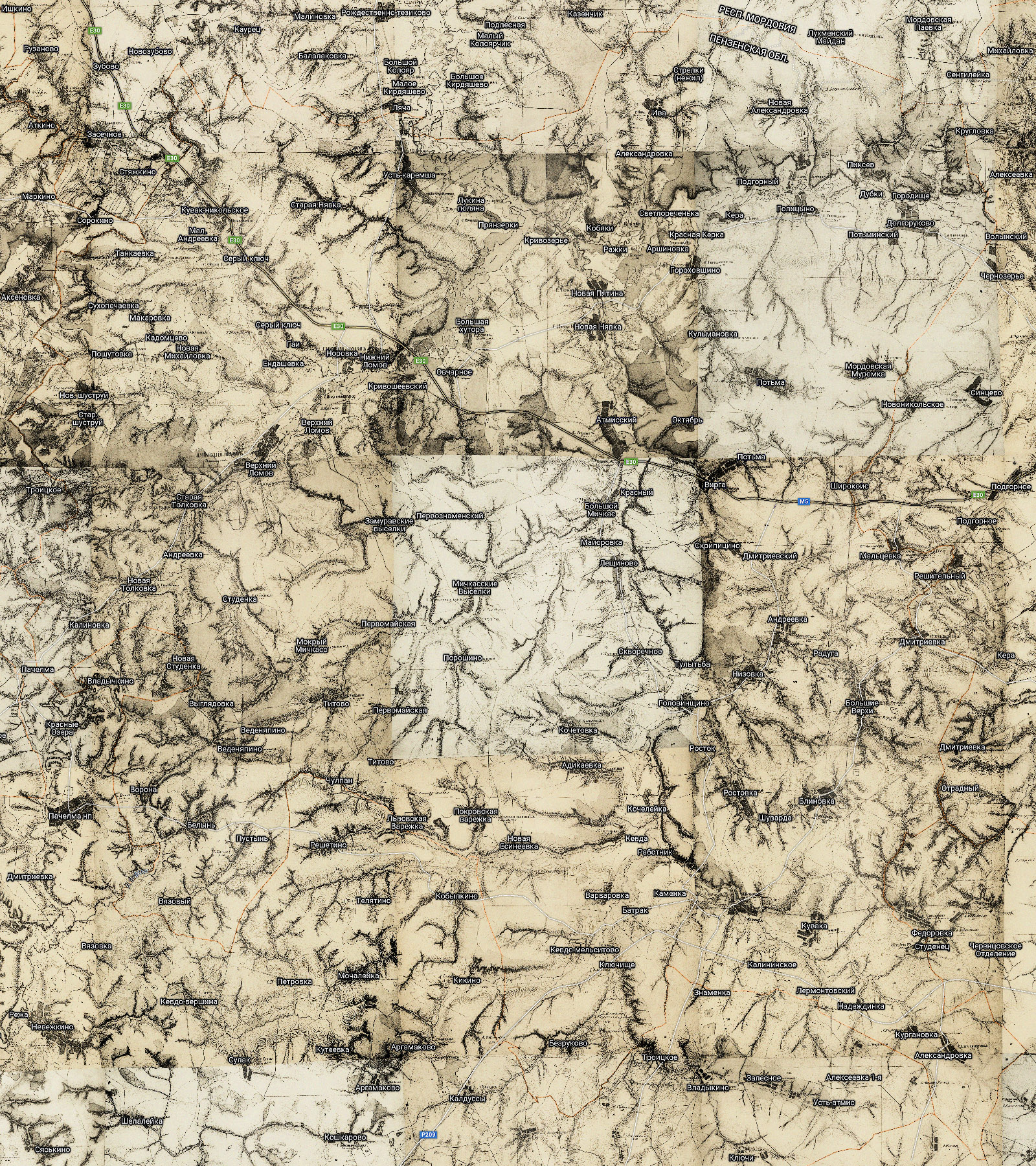 Межевая топографическая карта Пензенской губернии Александра Ивановича Менде (1800 - 1868). Часть карты на территорию Нижнеломовского уезда. Масштаб карты: 1:42000 (одна верста в одном дюйме или 420 м. в 1 см., верстовка).
