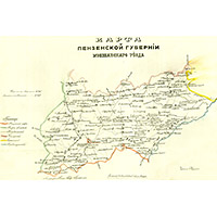 Литография Пензенского губернского правления. Чертил Нерусский. Масштаб 5 верст в дюйме. Показаны: границы уезда, город, села, деревни, главные и прочие просёлочные дороги.