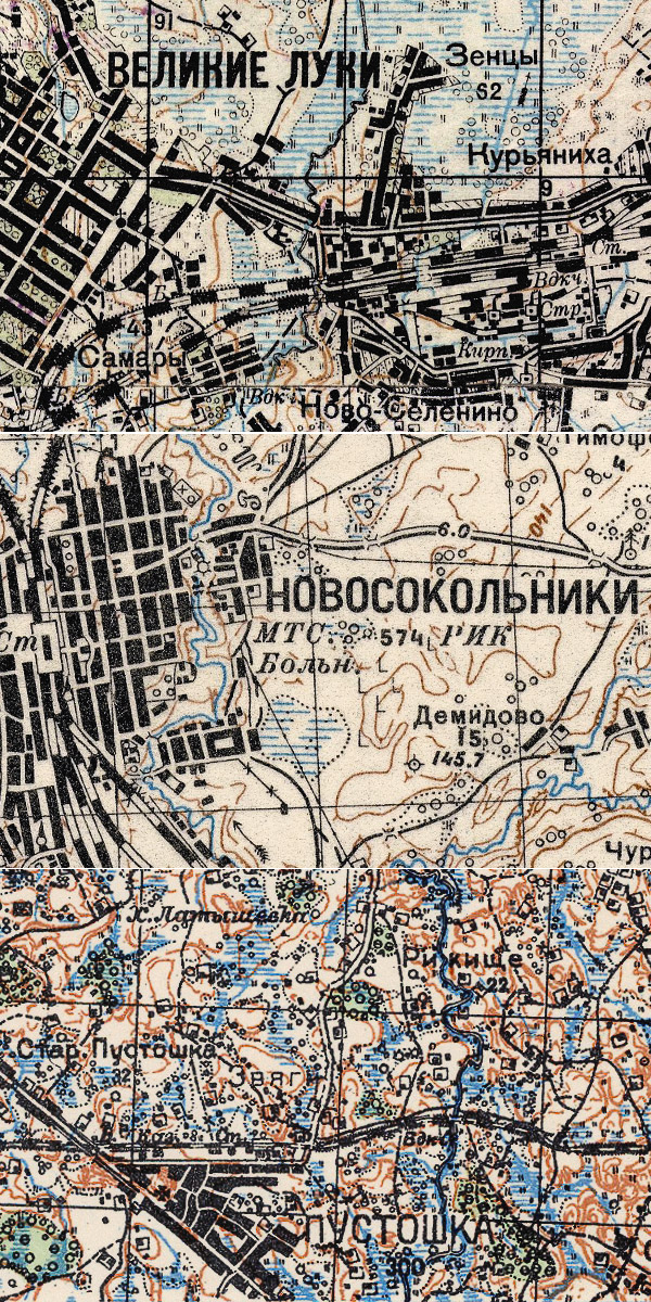 ![]() | Карта РККА окрестностей Великих Лук - картинка Размер: 19668 x 7524 пикселей / 72 Мб | |