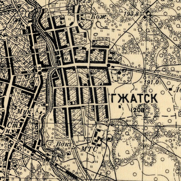 ![]() | Карта РККА окрестностей Гжатска для навигатора на Андроид Размер: 6400 x 7600 пикселей / 57 Мб |