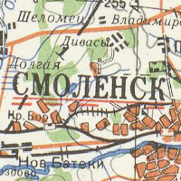 Главное управление геодезии и картографии при Совете Министров СССР. Карта составлена и подготовлена к печати Минской картографической фабрикой ГУГК СССР в 1990 году. Редактор О.И. Дубенкова. Тираж 64900 экз. Формат бумаги 89x84 см. Административно-территориальное деление Смоленской области дано на сентябрь 1990 года. Масштаб 1:400000, в 1 см. 4 км.