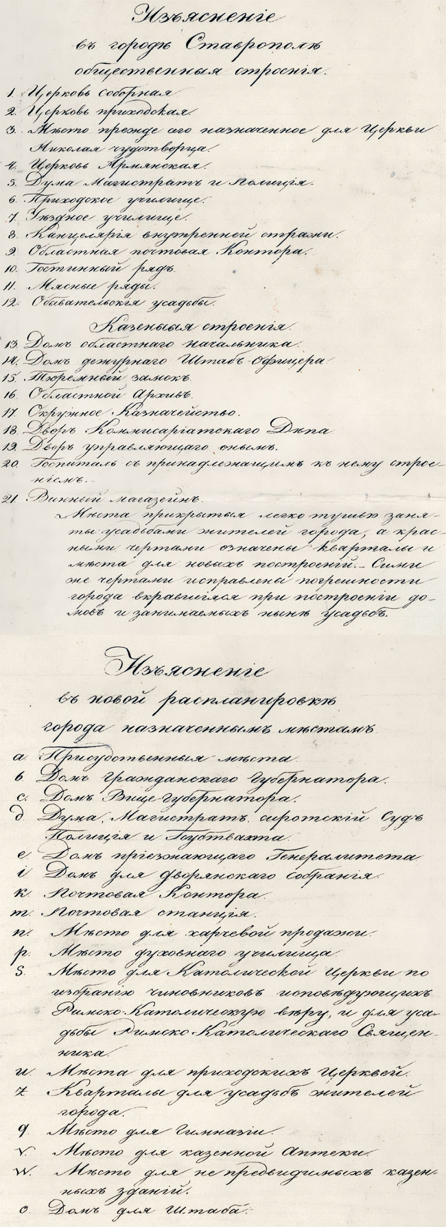 План города Ставрополя Кавказской области с назначением вновь мест для казенных, общественных зданий и усадьб для жителей города сего 1833 года. Создал архитектор коллежский асессор - Гайворонский. Масштаб 100 саженей в дюйме.
