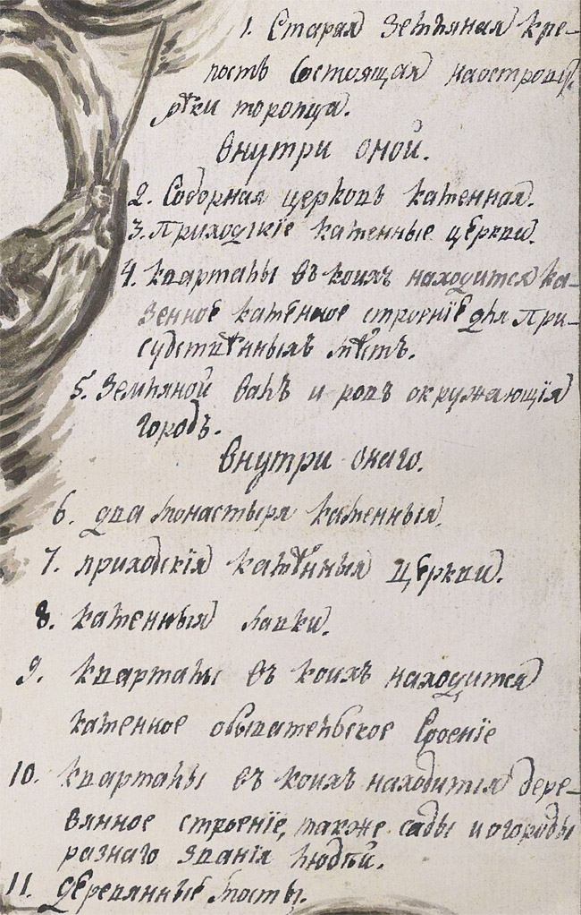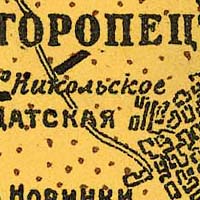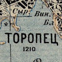 Проектная старая карта планировки города Торопец около 1780-1790 годов. Чертил Алексей Туркин. Размер 48x58 см. Масштаб 100 саженей в дюйме.