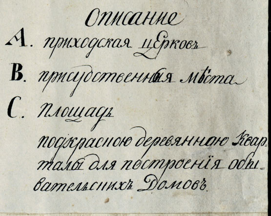 Геометрический план новоучреждаемого Вятского наместничества села Глазова, назначаемого быть городом с показанием в оном старого и вновь проектированного строения. Сочинён в 1780 году. Масштаб 20 саженей в дюйме.