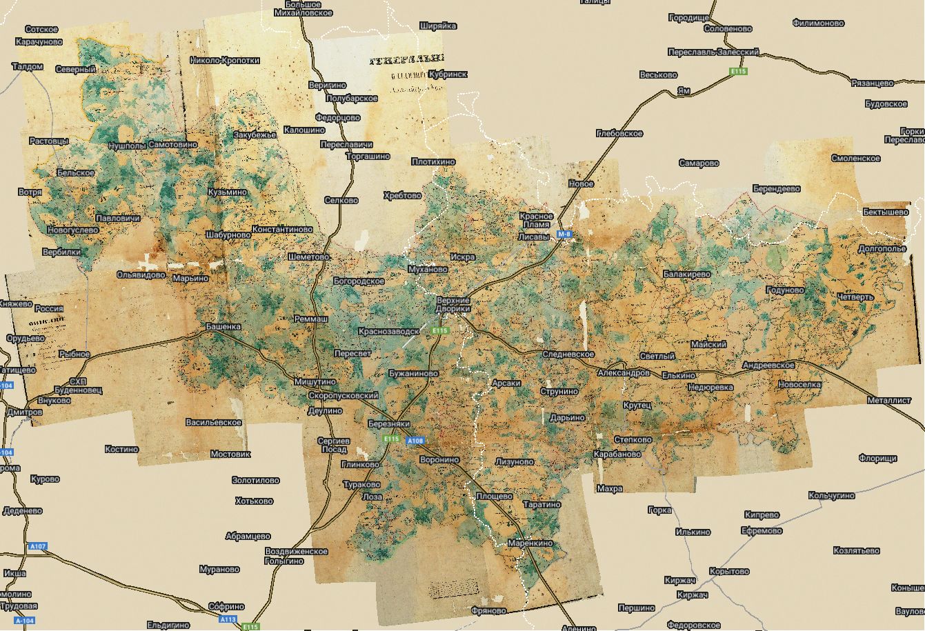 План Генерального Межевания Александровского уезда масштаба одна верста в дюйме 1:42000. По данным межевания с 1773 года.