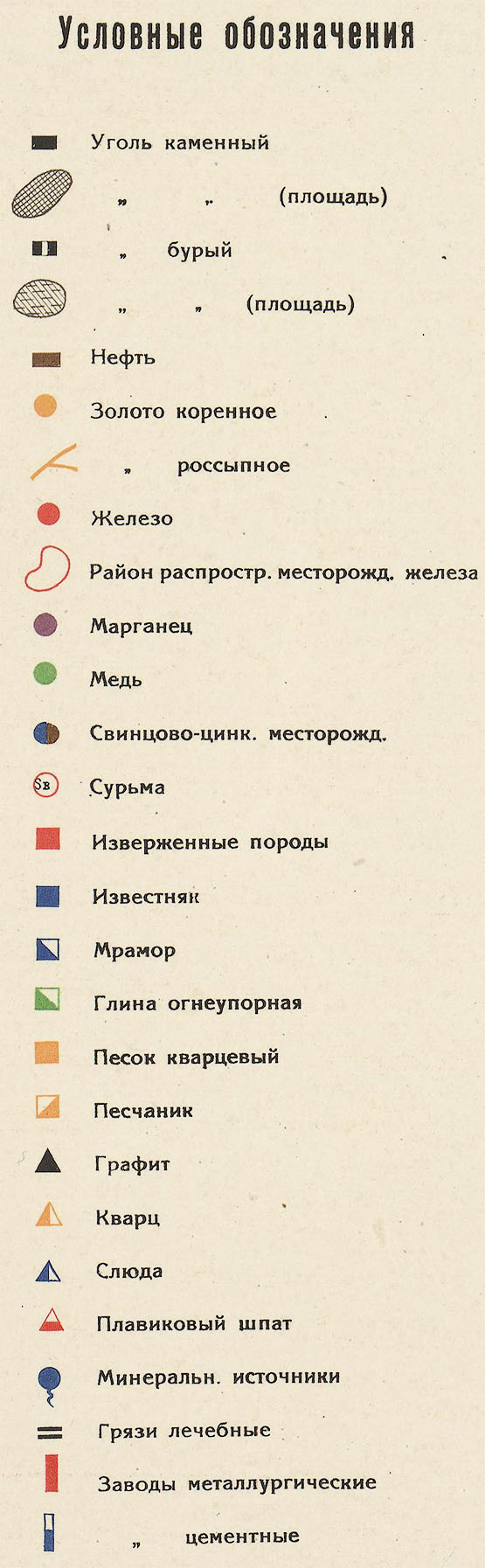 ![]() | Промышленная карта Дальнего востока 1930 г. Полезные ископаемые. |