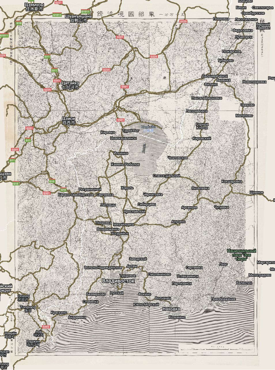 ![]() | Японская карта Приморского края 1940 года для печати Размер: 9319 x 12929 пикселей / 25 Мб |