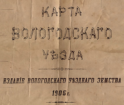 Карта Вологодского уезда Вологодской губернии масштабом 2 версты в дюйме 1:84000. Составлена техником А.А. Максимовым, редактирована инженером Д.А. Ильиным.