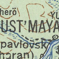 ![]() | Американская карта 1:1000000 окрестностей Оймякона 1943 года |