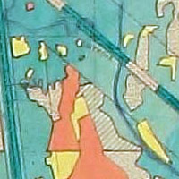Карта болот затапливаемых Рыбинским водохранилищем с нанесением данных прогноза о всплывании торфа. Масштаб 1:200000. Размер 66x85 см.