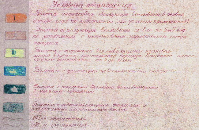 Title: Map of swamps flooded by the Rybinsk Reservoir in 1941