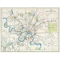 Схематичные планы городов СССР, показывающие маршруты общественного транспорта.