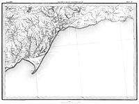 Основные города и крупные населенные пункты показанные на этом листе старой карты: Глафировка , Ейская Укрепление , Елачинская (Весело-Вознесенка ) , Маргаритово , Мокро-Чубурский (Александровка ) , Обрывское (Обрыв ) , Стан Кривой Косы (Седово ) , Хутор (Порт-Катон ) , Шабельское , и т.д. (В скобках даны современные названия, если они отличаются от старинных) .